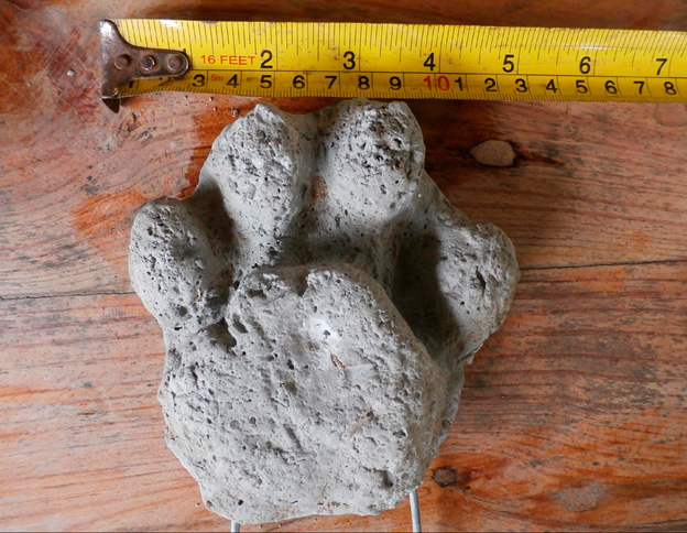 Mold of a jaguar footprint recently discovered in the Reventazon Valley.